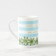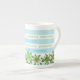 The Flower-of-the-Month and Birthstone for December on a striped bone china mug.