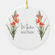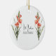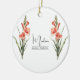 Birth month flower August Gladiolus ornament featuring an illustration of a gladiolus flower. Below the flower, the name is written in an elegant script font. Beneath the name, it states "August - Gladiolus," indicating that owner's birth month is August and her birth flower is the gladiolus. It is a personalised ornament, customised as a thoughtful gift for someone named Madison born in August.