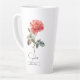 Birth month flower June Rose latte mug with an illustration of a rose flower. Below the flower, the name is written in an elegant script font. Beneath the name, it states "June - Rose," indicating that the owner's birth month is June and her birth flower is the rose. It is a personalised mug, created as a thoughtful gift for someone born in June.