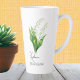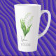 Featuring an illustration of lily of the valley flowers. Below the flowers, the name is written in a graceful script font. Beneath the name, it states "May - Lily of the Valley," indicating that her birth month is May and her birth flower is the lily of the valley. It is a personalised mug, likely customised as a thoughtful gift for someone born in May.