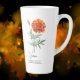 Birth month flower October Marigold latte mug featuring an illustration of a marigold flower. Below the flower, the name is written in an elegant script font. Beneath the name, it states " October - Marigold" indicating that the owner's birth month is September and her birth flower is the gladiolus. It is a personalised mug, customised as a thoughtful gift for someone born in October.