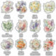 This sticker pack features the twelve birth months, the flowers, in vibrant watercolors, for every month, with corresponding labels.