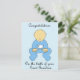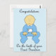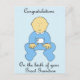 A lovely cartoon baby boy dressed in blue and the words 'Congratulations on the birth of your Great Grandson'.
