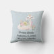 Adorable blue and white baby llama with flowers baby boy birth stats throw pillow for the nursery. See our matching collection of party products and baby products.