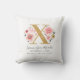 Birth Stats Letter X Pink Floral Monogram Initial Cushion
