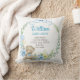 Birth stats nursery pillow with cute teddy bear. Cute teddy bear with a blue ribbon and blue balloons, makes a great keepsake gift for a newborn baby.