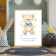 Birth Stats Teddy Bear Blue Bow Baby Boy Nursery Poster