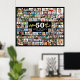 Birthday 100 Photos Making AGE Look Good Black Poster Print Sign. Create a birthday photo memory display foam board for any age utilising this easy-to-upload photo collage template with 100 pictures in various sizes of squares and rectangles to accommodate pictures of her or him for a fun birthday sign or party decoration and commemorative keepsake. The design features the title MAKING "AGE" LOOK GOOD! in a modern faux metallic gold foil calligraphy script typography and your custom text (the sample shows HAPPY BIRTHDAY NAME) and in your choice of background colour (shown in black). OPTIONS: The sample is shown in a 36x29" size on Value Paper (Matte); other standard and custom print sizes and paper quality, Instant Digital Download file for printing locally or transferring the design to a foam board, banner, canvas or other product options are available on the ordering page. RESIZING TIP: Choose Custom Size for even borders by changing the height and width proportionately AFTER clicking the UNLOCK icon (looks like a chain link). ASSISTANCE: For help with design modification or personalisation, colour change, resizing or transferring the design, contact the designer BEFORE ORDERING via the Zazzle Chat MESSAGE tab or email