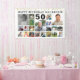 Celebrate any age birthday for him or her with a fun photo collage banner sign featuring 19 square pictures of photo memories through the years and personalised with your custom text and their age in your choice of font styles and colours as well as banner colour. The design features gold glitter confetti and shown in white with black text. OPTIONS: The sample is shown in a 3x5' size--other sizes are available on the ordering page or the design can be transferred to a poster, foam board, tapestry or other product or converted by the designer to a Digital Download file for local printing. ASSISTANCE: For help with design modification or personalisation, colour change, resizing or transferring the design or converting to a Download file, contact the designer BEFORE ORDERING via the Zazzle Chat MESSAGE tab or email makeitaboutyoustore@gmail.com.
