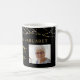 Celebrate an 80th birthday for him or her with this black and gold commemorative keepsake photo mug featuring a retro calligraphy script typography design stating 80 YEARS IN THE MAKING that incorporates their birth year within the design, personalised with your custom title or message and 2 pictures accented with string lights. ASSISTANCE: For help with design modification, personalisation, colour change, transferring the design to another product or if you would like coordinating items, contact the designer BEFORE ORDERING via Zazzle Chat or makeitaboutyoustore@gmail.com.