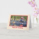 This peaceful scene of two fishermen at the lake appeals to all who love the outdoors. The small fishing boat comes with a large red umbrella to protect them from the sun. A Great Blue Heron stands in the water’s edge watching them. The inside verse is a text template and is easily changed or deleted.