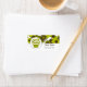 A birthday address label featuring a background of flowers in various shades of green over top half. Illustration of matching cupcake inside circle on left side. Personalise the text at right with your name and address. Look for matching invitations in the "Birthdays" category of Jill's Paperie.