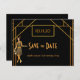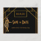 Elegant faux gold and glam for a 1920's style themed 50th (or any age) birthday party! An art deco style birthday party Save the Date card in faux gold and black for a glamorous celebration. Decorated with a 1920's style flapper girl and an art deco style frame. Templates for a date and name/age.