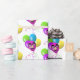 Rainbow birthday balloons on a white with a funny face and black glasses.