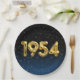 Gold foil balloons for 1954 birth year on gradient black and blue background with night stars for birthday party.