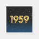 Gold foil balloons for 1959 birth year on gradient black and blue background with night stars for birthday party.
