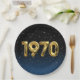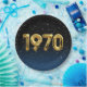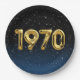 Gold mylar birthday balloons for 1970 birthday on gradient black and blue background with night stars.