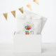 Destei's original birthday theme design featuring colourful birthday balloons and two gift boxes wrapped with pretty bows. The design is framed by cheerful confetti made out of stars and dots. The colour scheme includes colours such as red, pink, blue, yellow, purple, teal, and beige. There are also three personalizable text areas where one is meant for the person's age and the another two are meant for custom text.