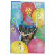 Happy birthday greetings with this cute design featuring a cute, party hat-wearing, Doberman Pinscher puppy surrounded by colourful balloons, confetti and streamers.