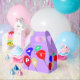 Yummy green frosting chocolate cupcake with colourful sprinkles, a red and white candle with colourful festive flicker flame. Colourful balloons including red, green, yellow on a purple background. Insert name in From field. Fun for birthday party favours, and classroom party gifts for any age. Original Artwork by TamiraZDesigns.