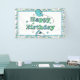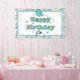 Prime colour blue, green boy’s birthday cake and balloon gender banner.