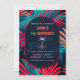 Birthday Beach tropical Palm tree leaves beach sunset. These fun personalised "1st Birthday Bash" Template with tropical palm tree design are perfect for any age beach themed birthday party! Customise everything from wording / sayings and colours.
