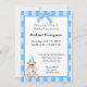 The perfect kids birthday invitation for a 1st birthday party. Invitation has a bear with a blue birthday party hat blowing a party horn . Customise your party invitation using our easy template.