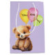 Cute watercolor bear with a balloon bouquet on purple for any age birthday.