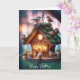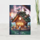 A whimsical birdhouse adorned with fresh green moss hosts several small birds with an illuminated "OPEN" sign inviting them.