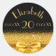 Elegant, classic, glamourous and feminine. A gold coloured bow with golden glitter and sparkle, a bit of bling and luxury for a birthday gift. Black background. Templates for name, date of birth and date of anniversary.