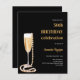 Birthday black gold bubbly wine pearls invitation