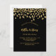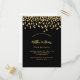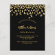 A modern, elegant and invitation. A black background decorated with faux gold confetti. Personalise and add a name and details.