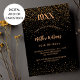 A modern, elegant and invitation. A black background decorated with golden confetti. Personalise and add year of birth, name and details.