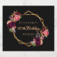 A chic black background with a faux gold geometric frame. Decorated with dark purple and burgundy flowers, roses and boho style feathers. Templates for a name, and a date. Date of birth or the date of the party, golden letters. With the text: 50th (or any age) Birthday written with golden hand lettered style script.