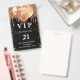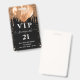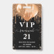 A modern, stylish and glamourous badge for a 21st (or any age) birthday party. A black background with dark faux gold glitter drips, paint dripping look and balloons. With the text: VIP. Personalise and add name, age, address/date. The name is written with a modern dark rose gold coloured hand lettered style script with swashes.
