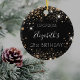 An ornament for a girly and glamourous 21st (or any age) birthday. A chic black background with faux gold glitter dust. Personalise and add a date, name and age 21. The name is written with a modern hand lettered style script. Perfect as party decoration, favour, keepsake or as a gift.