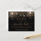 A girly and trendy Save the Date card for a birthday party. A black background decorated with faux gold glitter, sparkles. Personalise and add a date and name. Golden coloured letters. The text: Save the Date is written with a large trendy hand lettered style script with swashes.
