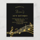 A trendy, modern 50th (or any age) birthday party invitation card for both men and women. A classic black background and music notes, golden coloured letters. Personalise and add your party information. Back: Black colour faux gold music notes.