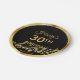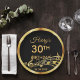 Modern and elegant black background with faux gold music notes for a 30th birthday party. Templates for the age 30 and name. The name is written in a hand-lettered style script. Golden letters and number. For both him and her.