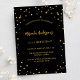 A glamourous birthday party invitation for both him and her. A black background decorated with faux gold stars. Personalise and add a name and party details. Golden coloured text.