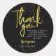 A gorgeous birthday party favour thank you gift sticker. This fabulous sticker features gold effect typography on a black background with gold confetti. Easy to personalise with your own birthday party thank you details.