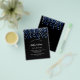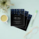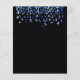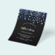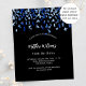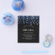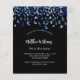 A modern, elegant and invitation. A black background decorated with blue confetti. Personalise and add a name and details. White text.