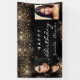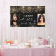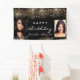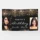 A banner for a girly and glamourous birthday party for two girls, women. A chic black background with faux gold glitter dust. Add your own 2 two photos of the birthday girls. Text: Happy Birthday. The word Birthday and the names are written with a modern hand lettered style script. Can be used as a welcome banner and as party wall decoration.