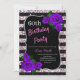 Elegant black and rose pink stripes glitter and purple roses birthday party invitation for women of any age. The age can be changed for any age. Text can be changed to anything to fit your event. Fonts, font colour and text are completely customisable! Paper shape and type can be customised to fit your budget and taste!