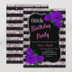 Birthday Black Pink Stripes Glitter Purple Roses Invitation