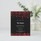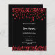 A modern, elegant and invitation. A black background decorated with red confetti. Personalise and add a name and details. White text.