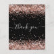 Birthday black rose gold glitter thank you card