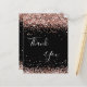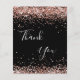 A feminine and elegant birthday thank you card. A black background colour. With rose gold confetti. On front, large hand lettered script and the text: Thank You.