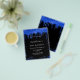 A girly and feminine 21st (or any age) birthday party invitation. On front: A chic black background. Decorated with royal blue faux glitter drips, paint dripping look. Personalise and add a name and party details. The name is written with a hand lettered style script.