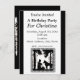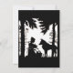 This flat card party invitation is black and white with a silhouette of little red riding hood sitting in the woods with the wolf under trees in a black fancy frame. Customise your information on the front with the templates.